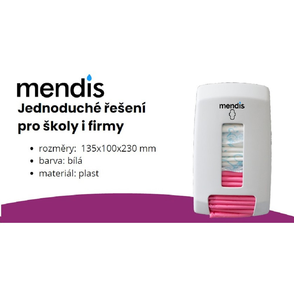 Zásobník vložek Mendis je spolehlivým a moderním řešením pro školy, kanceláře, obchodní centra i restaurace. Umožňuje poskytovat ženám potřebný komfort a zároveň udržet čisté a profesionální prostředí.
