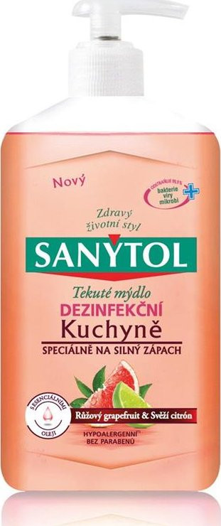 Většina infekcí je přenášena pomocí rukou, proto je jejich pravidelné mytí tím nejjednodušším způsobem, jak infekcím předcházet. Kuchyňské dezinfekční mýdlo SANYTOL je hypoalergenní , obsahuje patentovaný aktivní pohlcovač pachů a je rovněž obohaceno o esenciální oleje citrusových plodů, které jsou známé svým čisticím efektem. Jeho složení pohlcuje přetrvávající kuchyňské pachy a zanechává Vaše ruce svěží, hebké a chráněné.