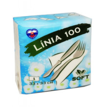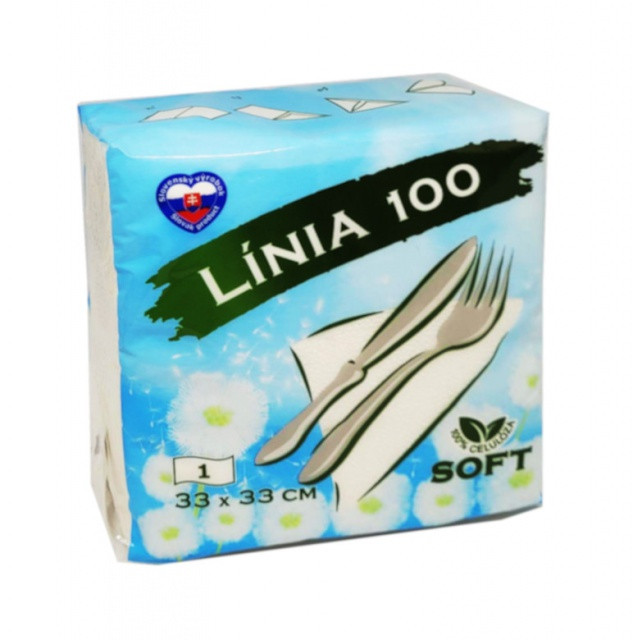 Línia 100 jsou kvalitní bílé papírové ubrousky, které jsou vyrobeny z celulózy. Jejich jedinečnost spočívá v jednovrstvé struktuře, která však přesto dokáže efektivně absorbovat tekutiny.