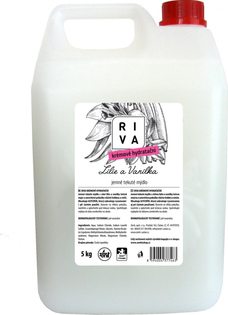 Na úvod » DROGERIE » TEKUTÁ MÝDLA » TEKUTÉ MÝDLO RIVA 5 L LILIE A VANILKA