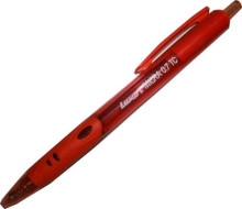 Celoplastové kuličkové pero, transparentní tělo a pogumovaný úchop. Lehké psaní, tenká stopa písma.